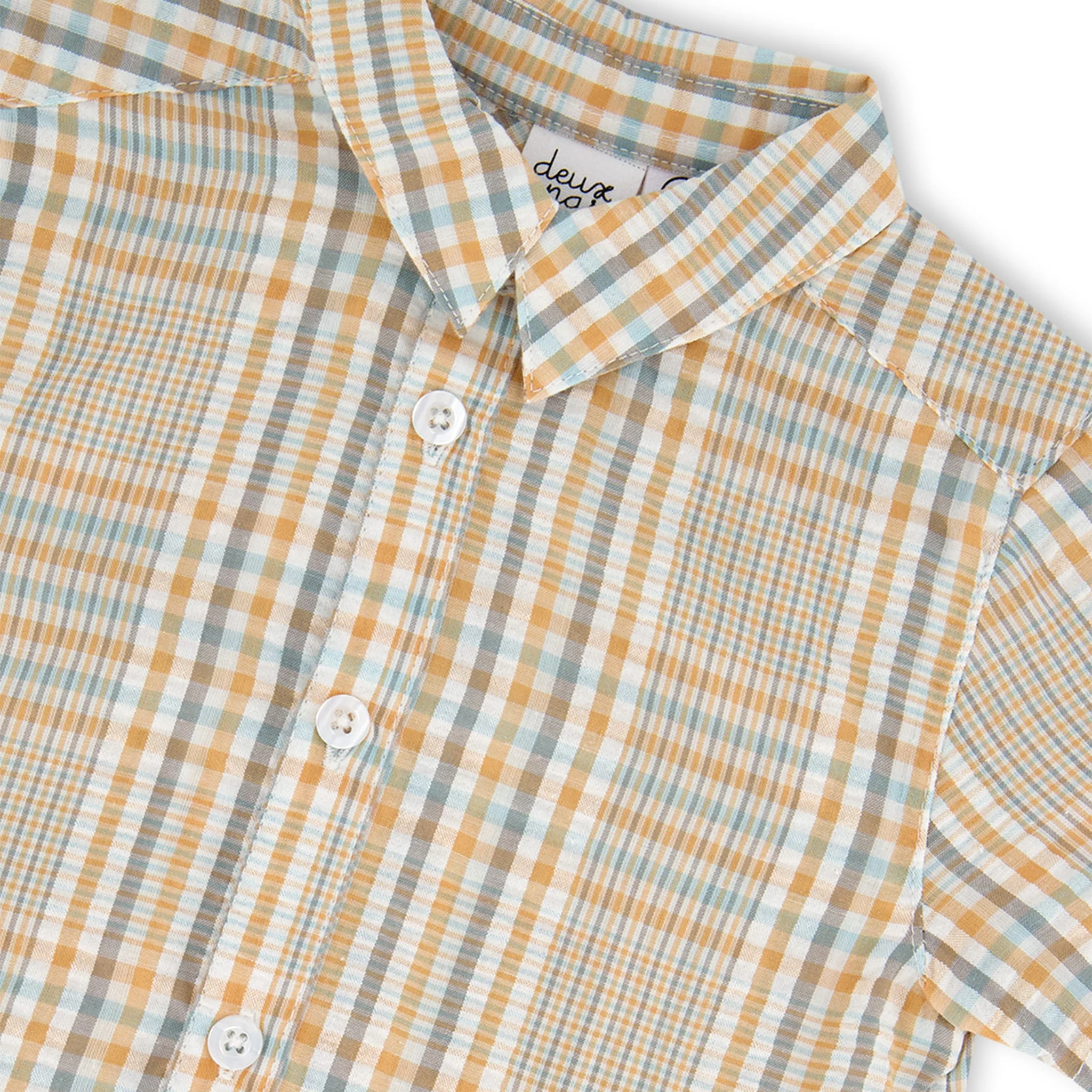 Superposez n'importe quel t-shirt de notre collection "Sable de Malibu" avec notre chemise à manches courtes boutonnée à carreaux beige et sauge. Fait dans un mélange de polyester/coton doux au toucher et léger à porter, cette chemise classique a des manches courtes, une patte de boutonnage à l'avant, un col et une petite étiquette avec logo à l'ourlet.