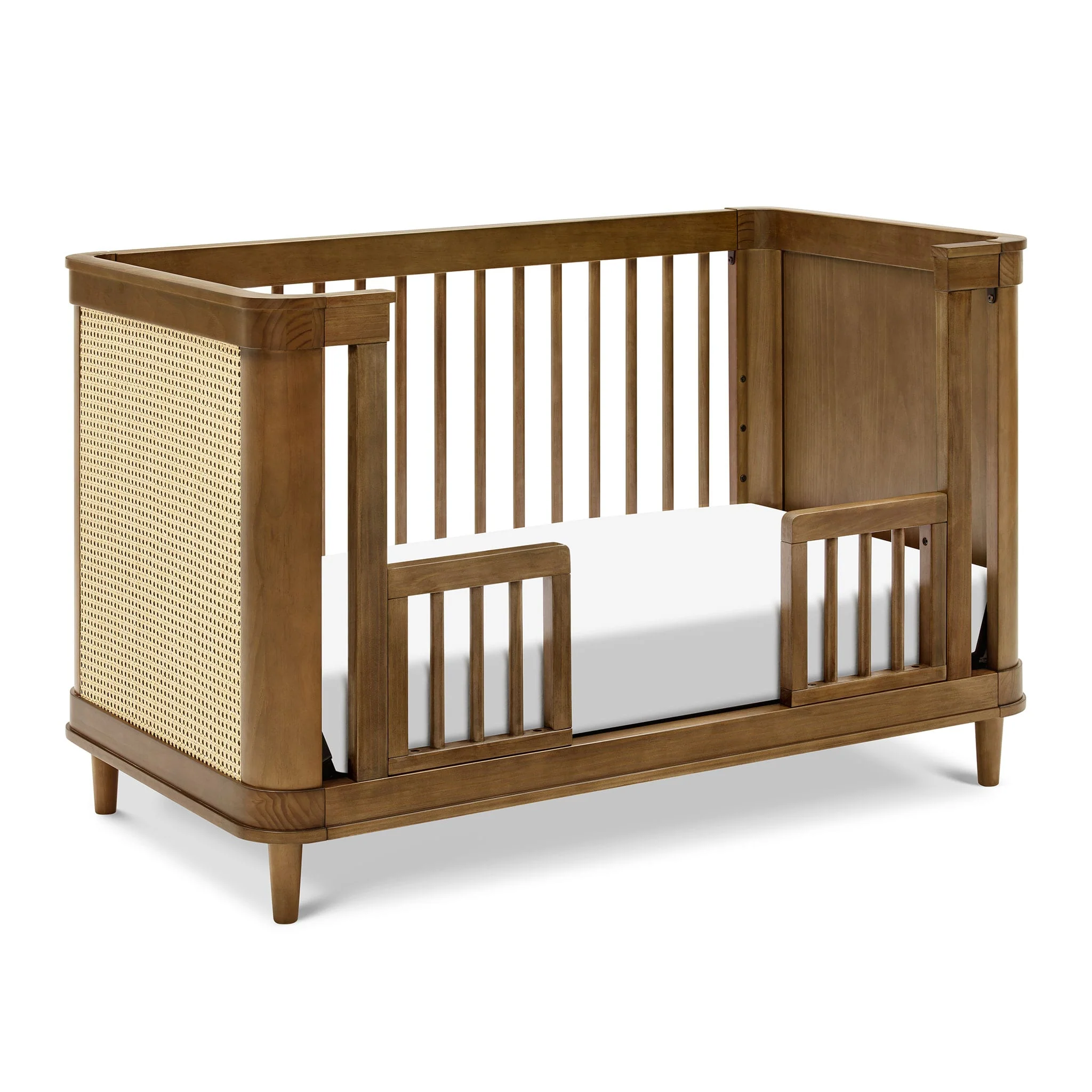 Adoptez un style contemporain avec la couchette convertible 3 en 1 Marin. Doté d'une silhouette légèrement incurvée avec des panneaux latéraux en rotin arrondi solide, le Marin est une pièce de transition sans effort pour la maison. Le lit de bébé se transforme en lit pour tout-petit et en lit de jour, et s'adapte à n'importe quel matelas de lit de bébé standard. convertible