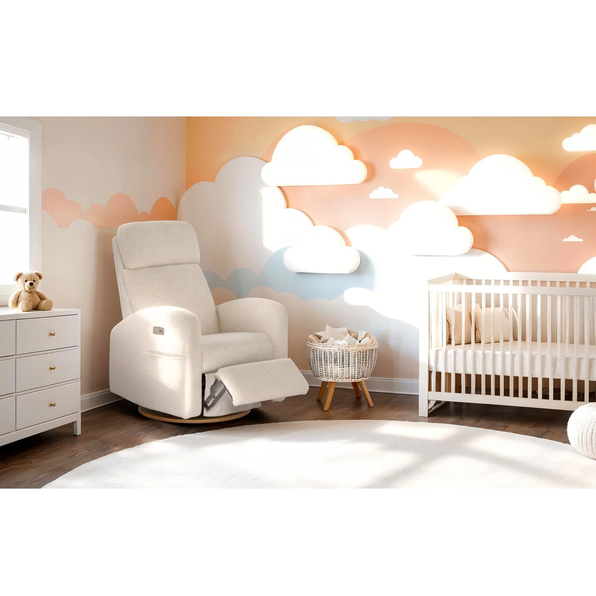 Le nouveau fauteuil inclinable électrique Hailey avec un appui-tête ajustable à ailes latérales offre un design unique enveloppant qui procure une sensation de sécurité et de confort optimal, idéal pour les longues nuits ou les moments de détente. Cet appui-tête utilisé dans l’industrie aéronautique est conçu pour offrir un confort personnalisé grâce à sa capacité d’ajustement en hauteur, permettant ainsi de s’adapter aux besoins spécifiques de chaque parent. Ses ailes latérales, pliables ou rabattables, offrent un soutien supplémentaire en maintenant la tête dans une position stable et ergonomique. Elles empêchent la tête de basculer sur les côtés, particulièrement utile pendant le sommeil ou lors de périodes de repos prolongées.