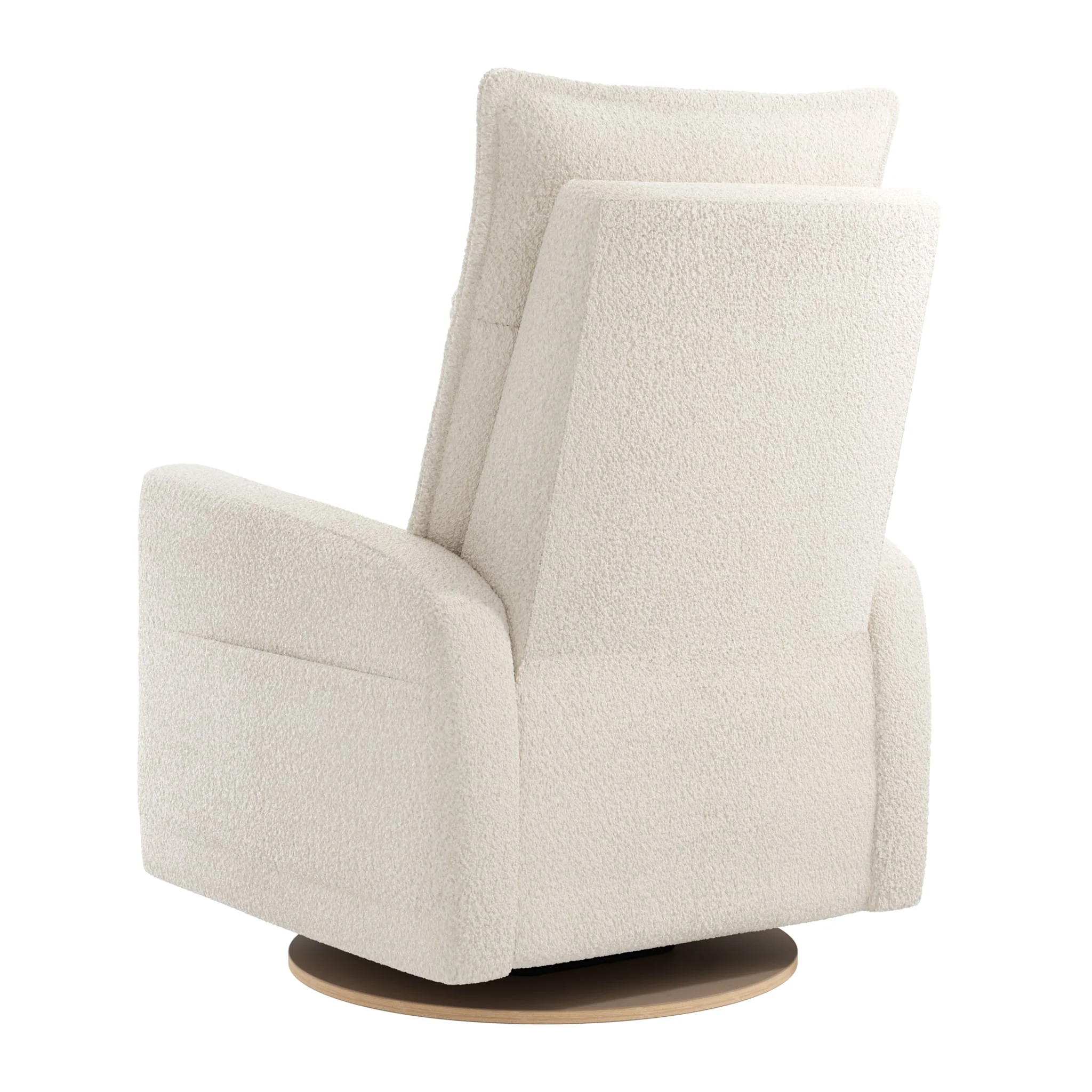 Le nouveau fauteuil inclinable électrique Arya offre aux chambres de bébé un style élégant, décontracté et confortable avec des coussins moelleux, qui vous permettent de s’enfoncer dans le fauteuil pour trouver la position de détente idéale. La version électrique offre une inclinaison motorisée en douceur, avec un panneau de commande dans l'accoudoir qui comporte des boutons qui contrôlent l'inclinaison, ainsi qu'un port USB et USB-C pour que vous puissiez avoir des appareils électroniques à portée de main. Le fauteuil inclinable pivote avec un mouvement de bercement fluide, de sorte que vous ne perturberez pas le sommeil de votre tout-petit pendant que vous vous installez confortablement.