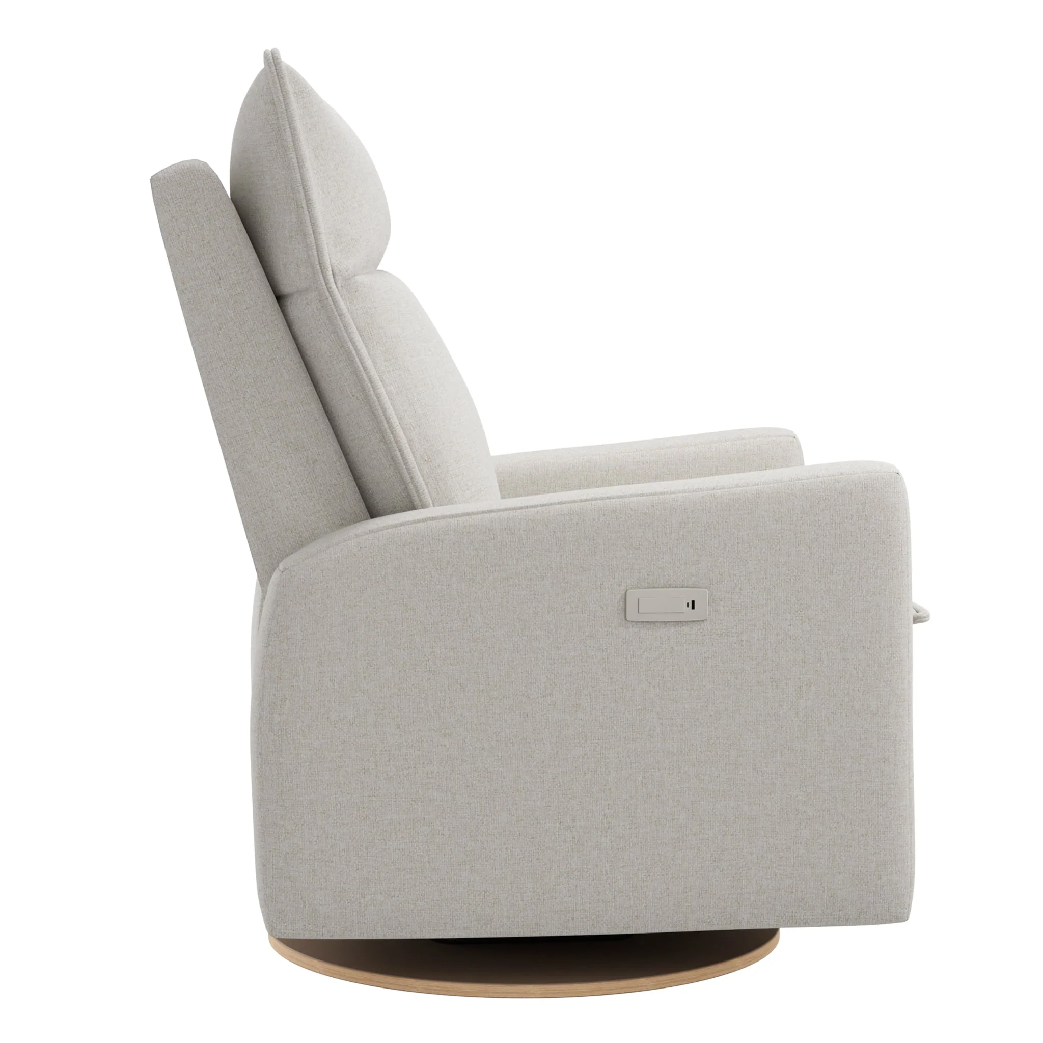 Le nouveau fauteuil inclinable électrique Arya offre aux chambres de bébé un style élégant, décontracté et confortable avec des coussins moelleux, qui vous permettent de s’enfoncer dans le fauteuil pour trouver la position de détente idéale. La version électrique offre une inclinaison motorisée en douceur, avec un panneau de commande dans l'accoudoir qui comporte des boutons qui contrôlent l'inclinaison, ainsi qu'un port USB et USB-C pour que vous puissiez avoir des appareils électroniques à portée de main. Le fauteuil inclinable pivote avec un mouvement de bercement fluide, de sorte que vous ne perturberez pas le sommeil de votre tout-petit pendant que vous vous installez confortablement.