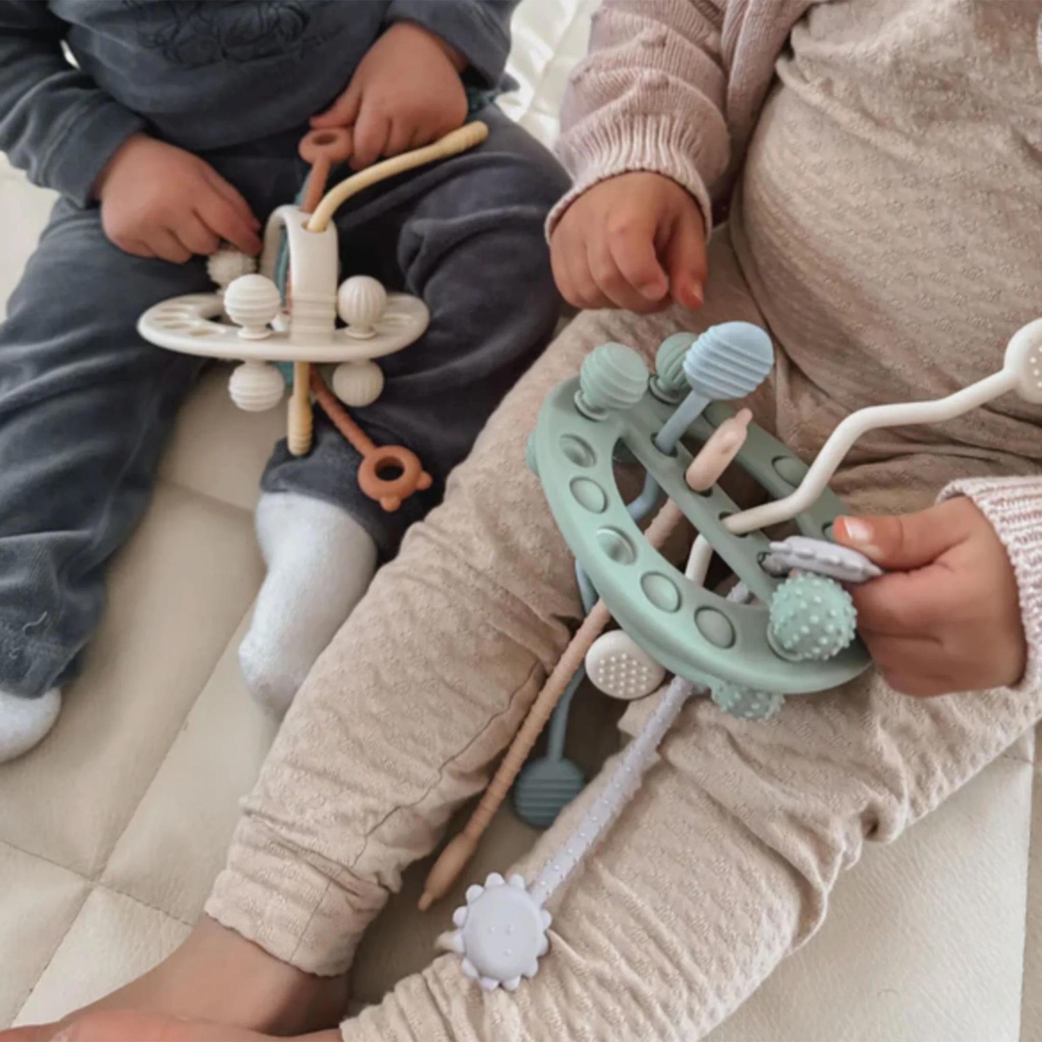 Chez noüka, nous savons que le jeu est bien plus qu'un simple divertissement : c'est une occasion importante d'apprendre et de grandir. Le jouet sensoriel tactile noüka est conçu pour occuper votre tout-petit pendant des heures, encourageant l'exploration sensorielle et le développement de sa motricité fine. Grâce à ses cordons à tirer qui produisent différents sons et vibrations, ce jouet éveille la curiosité tout en apaisant les poussées dentaires de bébé. Alliance parfaite entre plaisir et développement, le jouet sensoriel tactile contribue à développer les compétences essentielles tout en rendant le jeu stimulant.