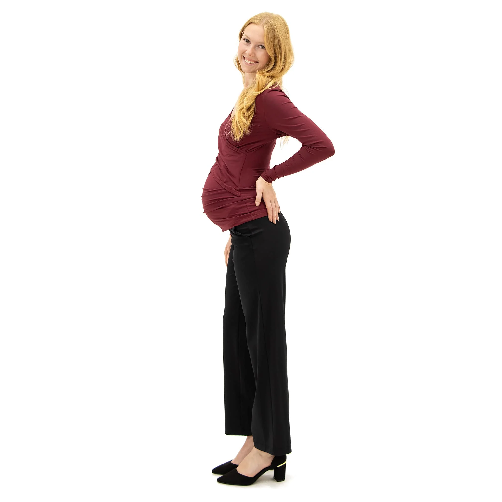 Ce pantalon de maternité classique peut être porté pour le travail ou pour le confort.