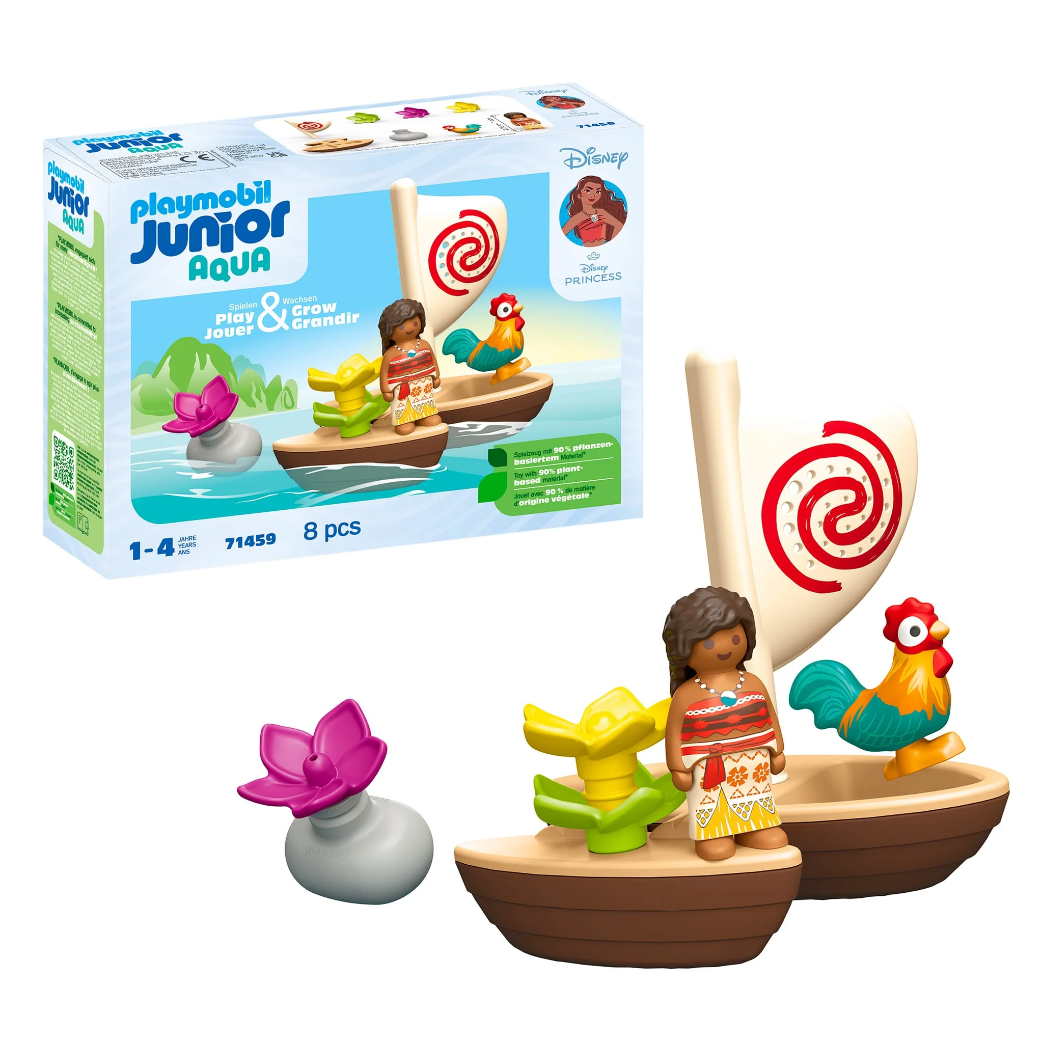 Le Bateau de Moana PLAYMOBIL est fabriqué à partir de plus de 90 % de plastiques d'origine végétale. Son design robuste est sûr et facile à nettoyer, et l'emballage utilise 90 % de carton recyclé. Cet ensemble est à la fois amusant et un choix respectueux de l'environnement pour les parents.