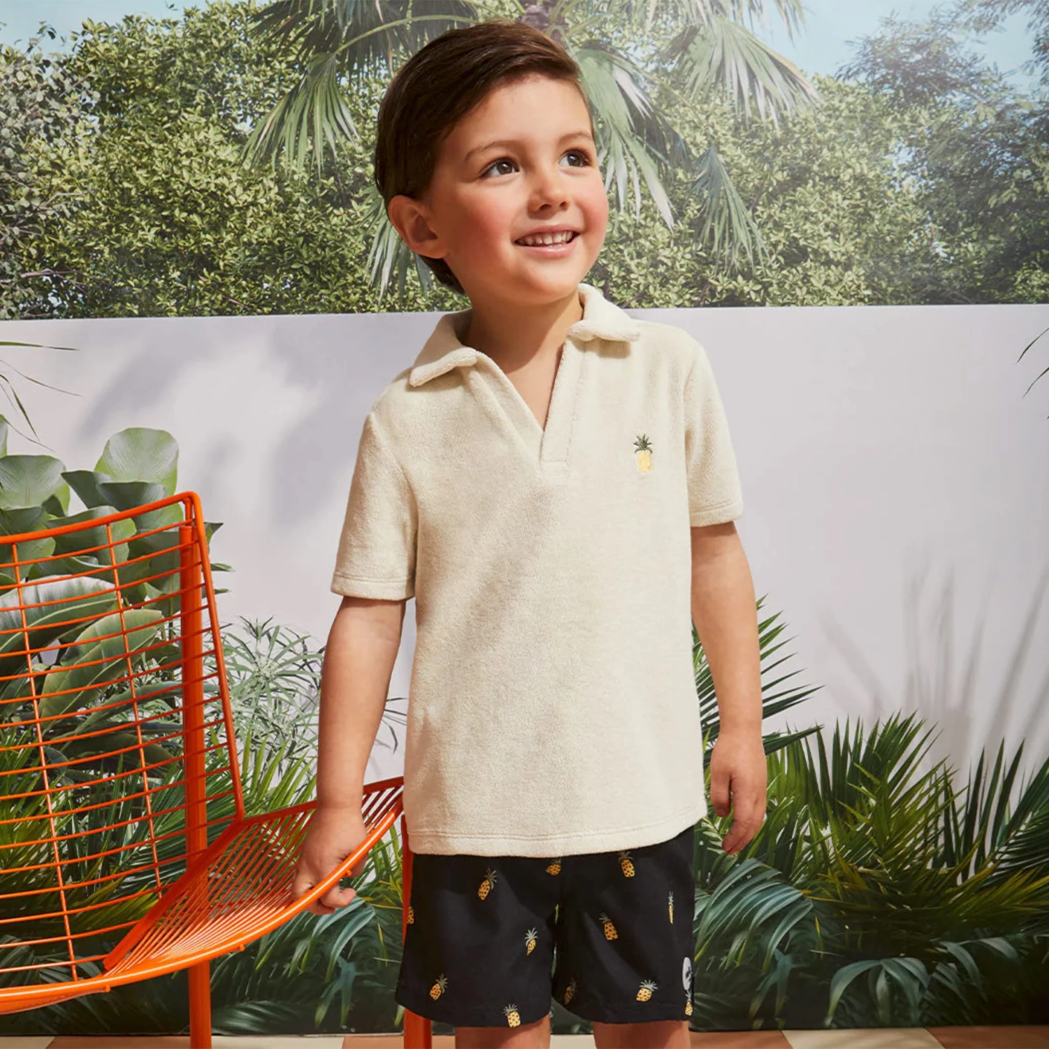 Qu'il soit sur le terrain de golf avec papa ou qu'il passe une journée en famille à la plage, ce maillot de bain bleu foncé a un style polo à la fois cool et décontracté, qu'il soit mouillé ou sec. Doté d'une protection solaire intégrée, ce maillot de bain est idéal pour éliminer la classique bataille de crème solaire tous les jours des vacances (mais n'oubliez pas son visage et ses jambes!).