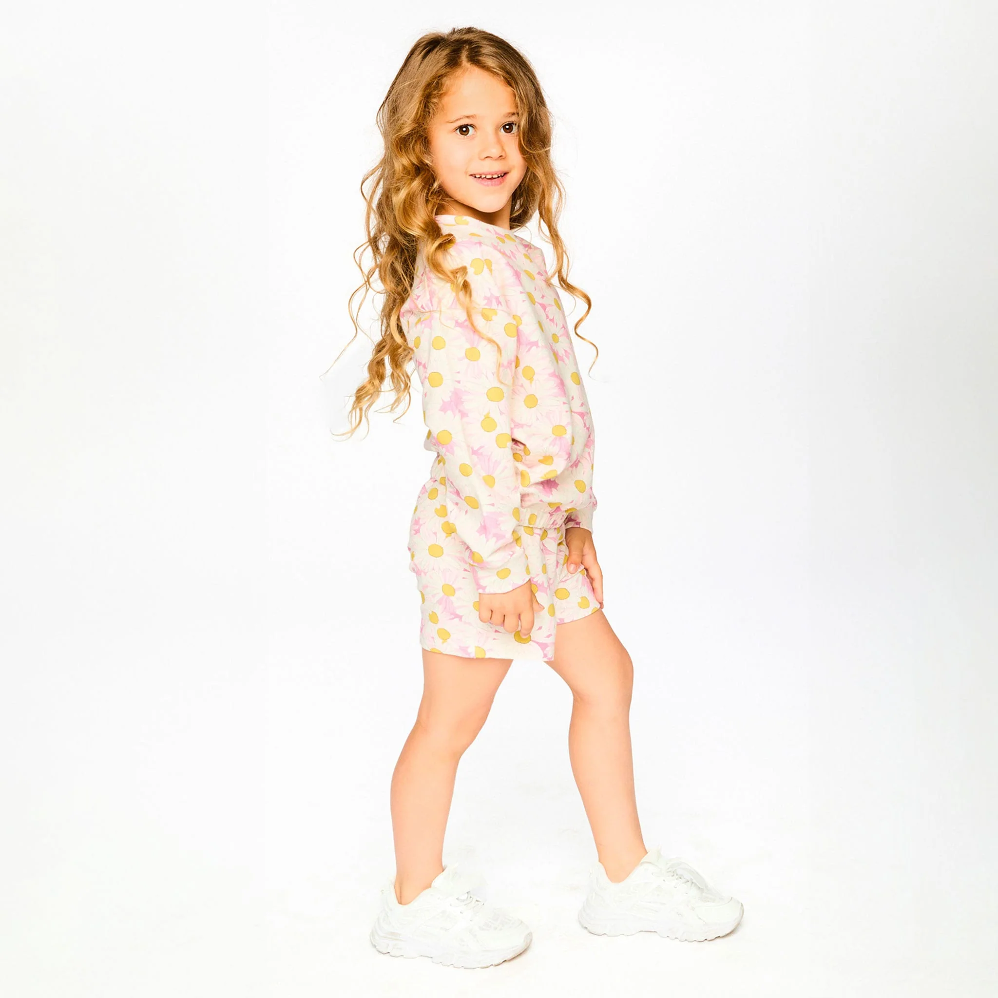 Ludique et confortable, notre short en molleton rose imprimé marguerites apporte une touche de fraîcheur et de gaieté aux journées d’été. Ce bas se distingue par sa taille élastique pratique, ses poches dégagées fonctionnelles et son imprimé de marguerites éclatantes. Issu de la collection "Explosion de marguerites", il s’agence facilement avec nos hauts légers.