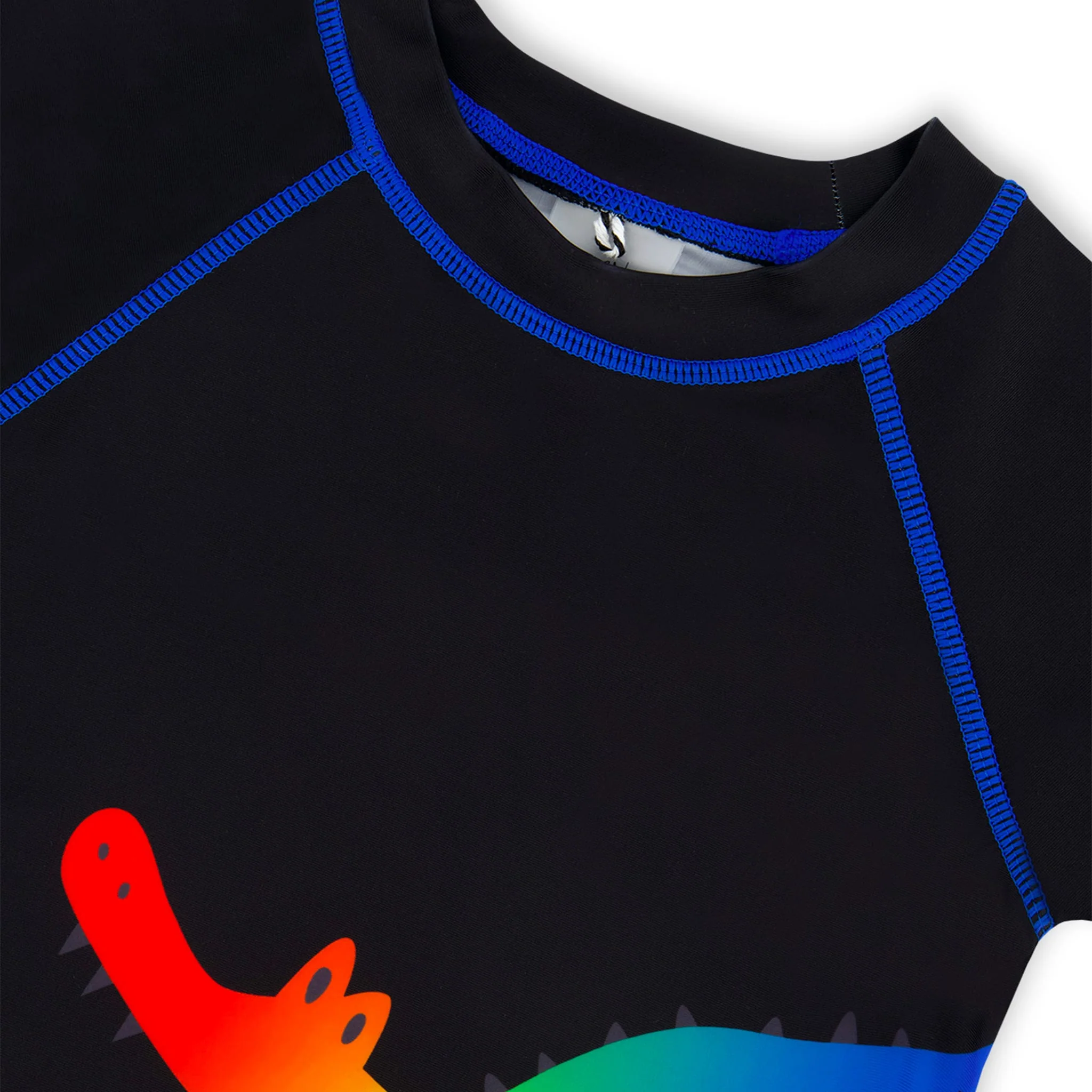 Un imprimé dégradé ajoute un style audacieux et lumineux à notre rashguard à manches courtes bleu marine, turquoise et orange. Offrant une protection solaire UPF 50+, ce rashguard coloré a des manches courtes raglan, un col rond, un imprimé de paresseux sur la poitrine et des surpiqûres contrastées au niveau du col, des manches et de l'ourlet.