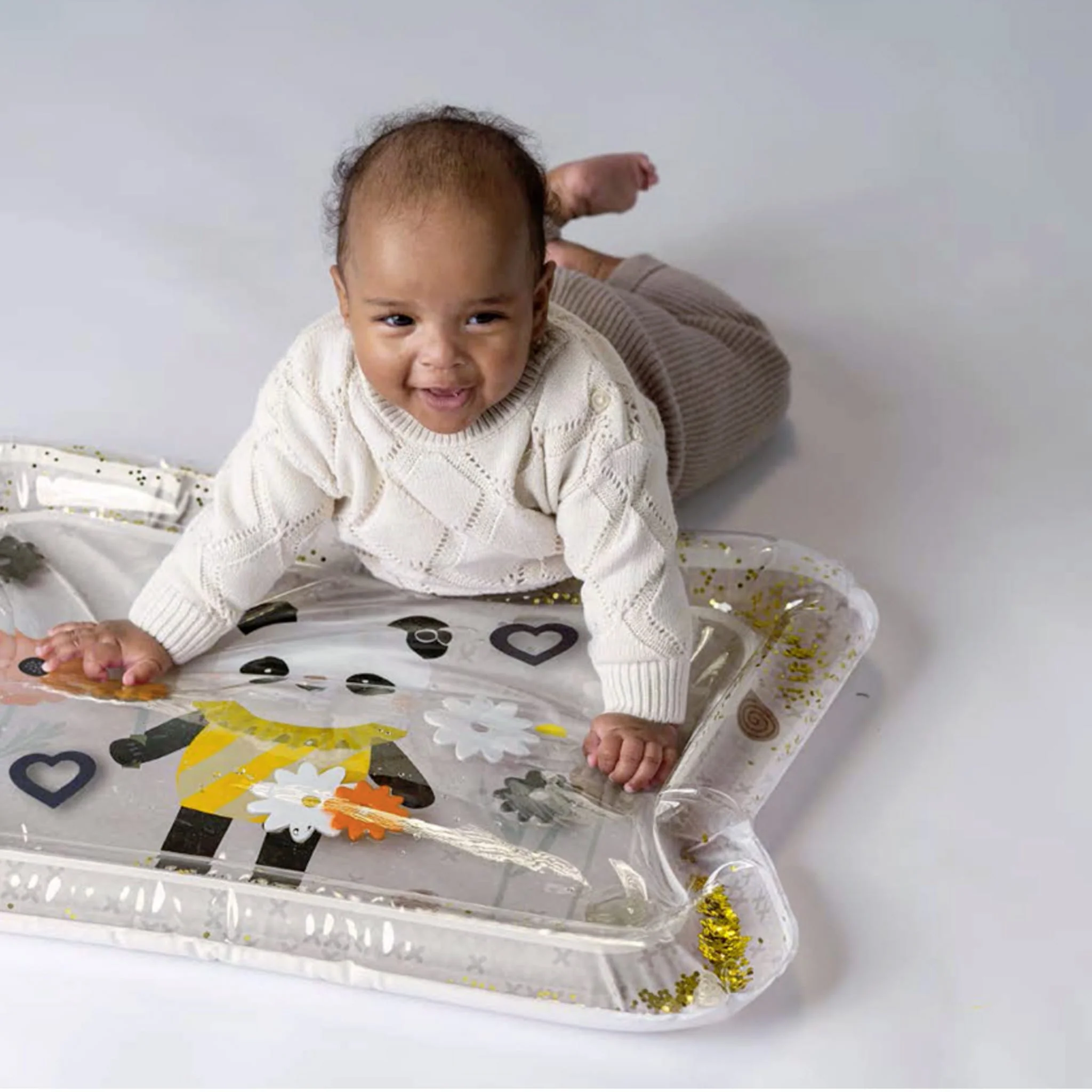 Plongez dans l'amusement avec nos tapis d'eau Panda et fleurs! Ces tapis souples et moelleux sont remplis d'eau et de jouets flottants, transformant l'heure du ventre en une aventure passionnante. Les bébés développent leurs muscles et explorent des motifs lumineux et ludiques. En atteignant les jouets flottants, les bébés améliorent leur coordination œil-main et leur motricité fine. Faciles à nettoyer et parfaits pour les bébés, nos tapis d'éveil font de chaque moment de jeu une expérience d'apprentissage sensorielle et amusante !
